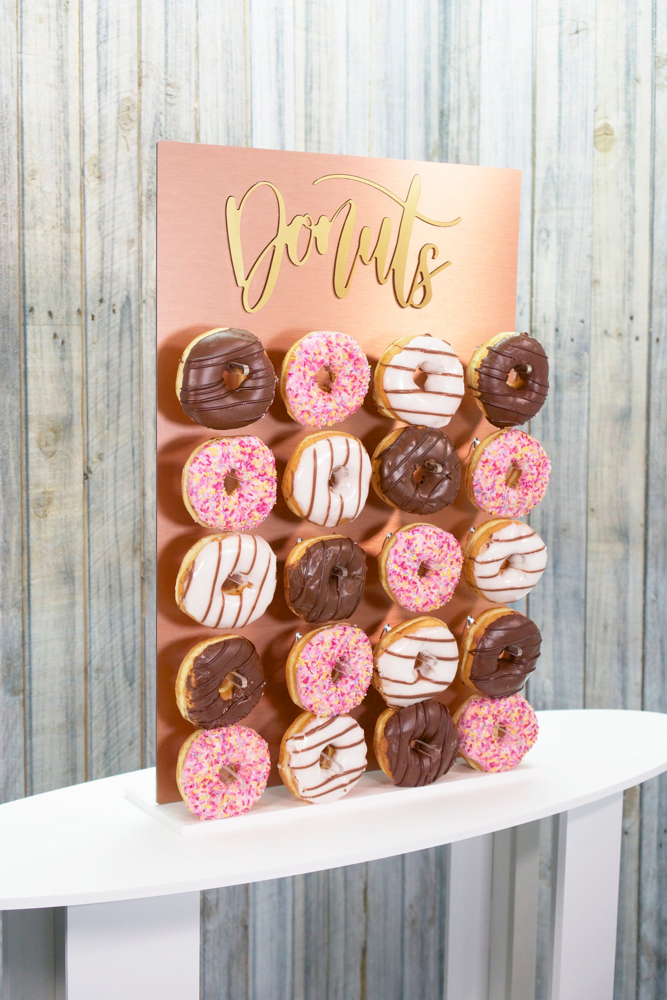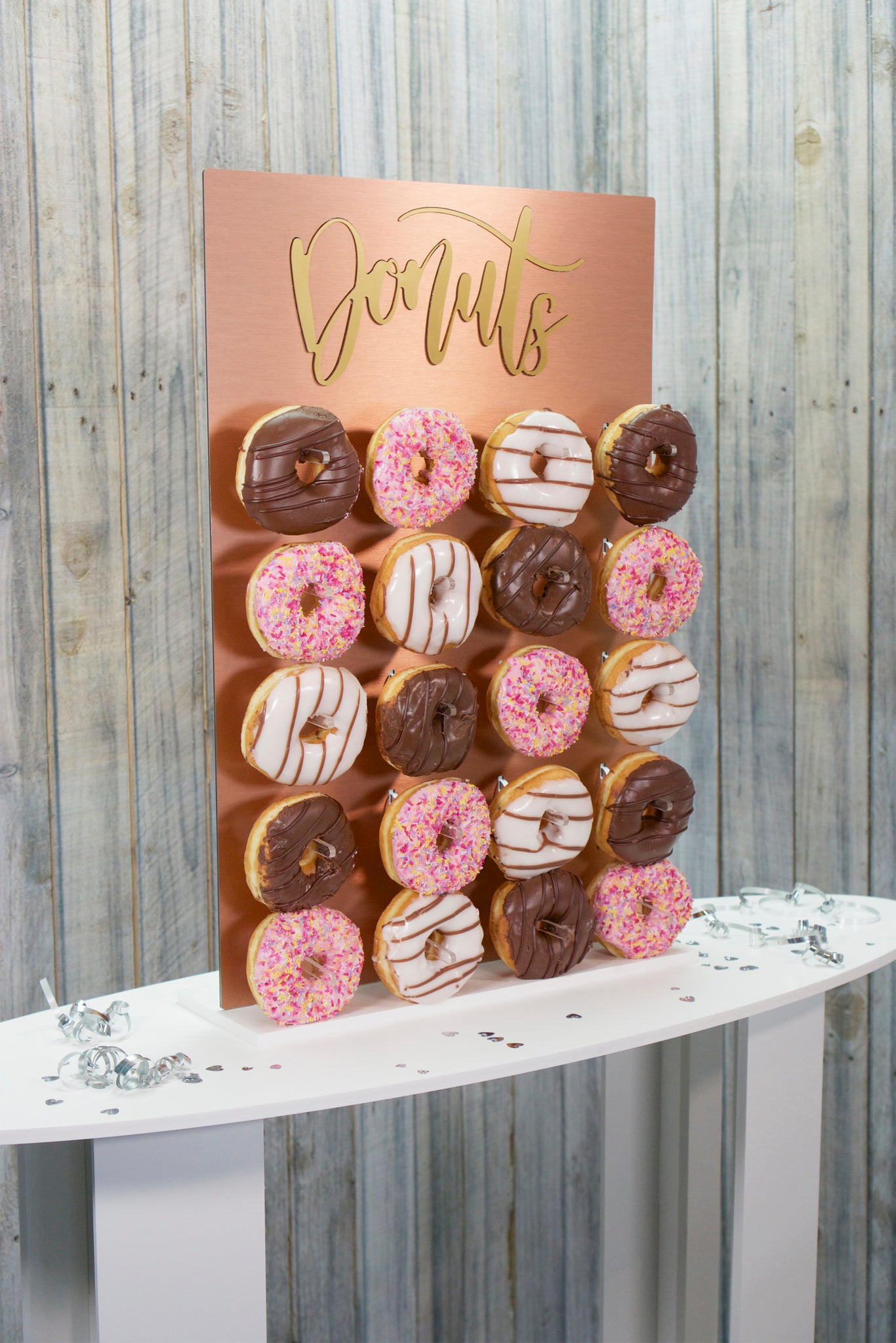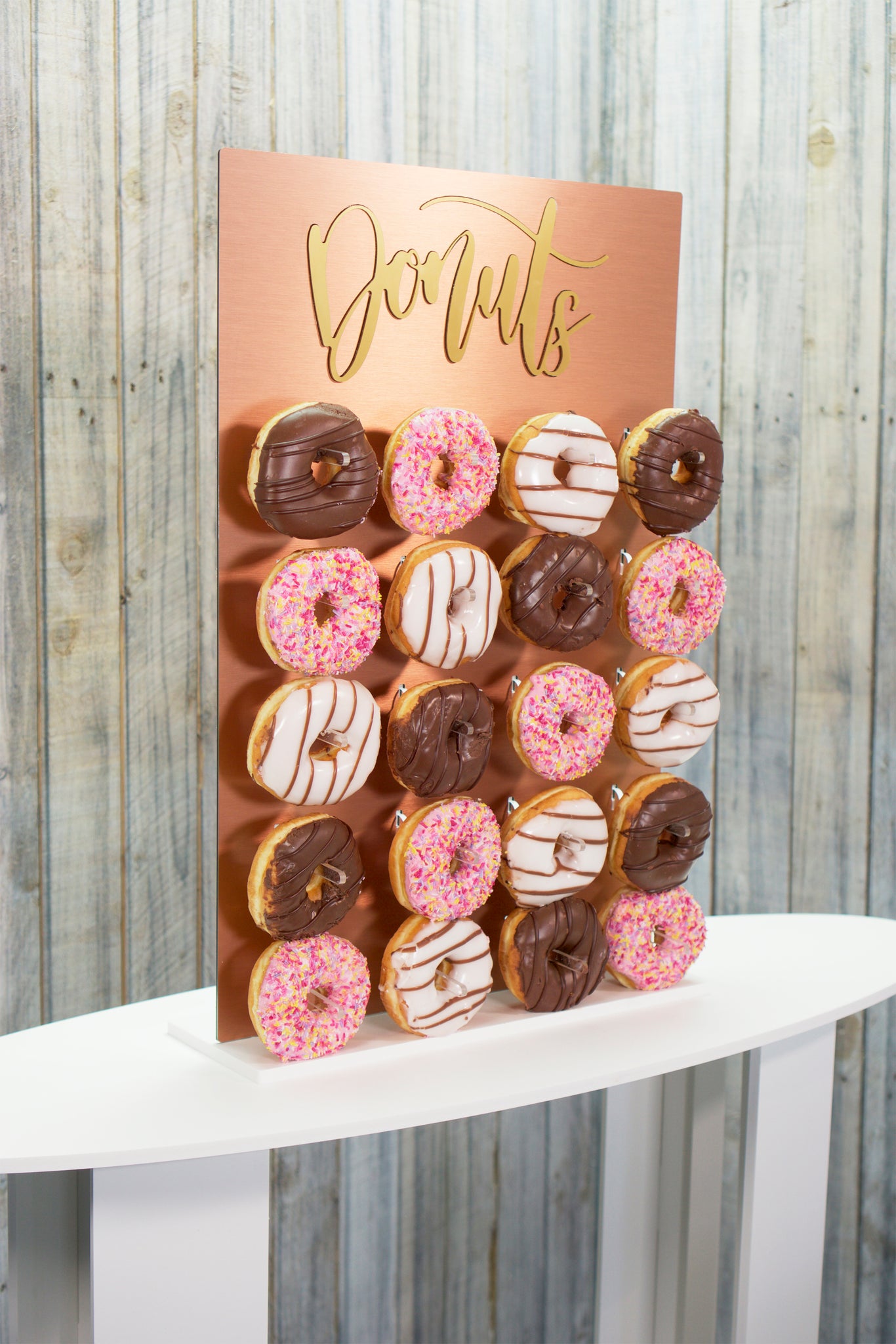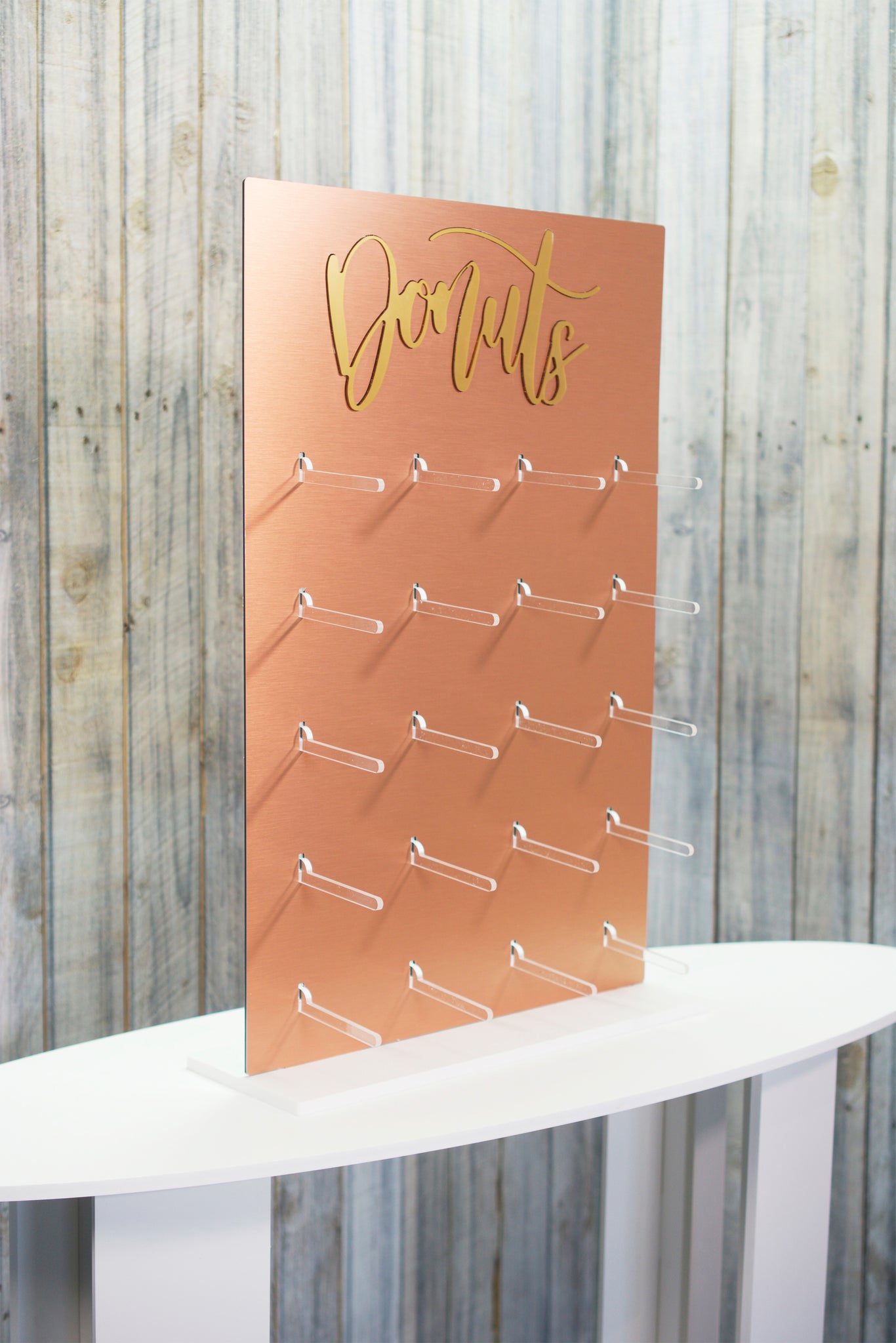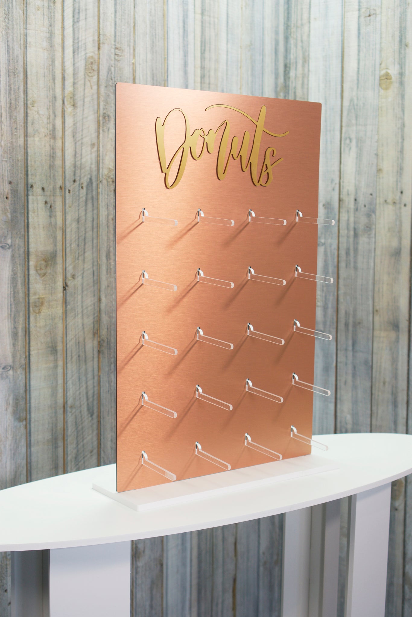 Rose Gold Donut Wall. 43cm x 65cm. Holds 20-40 Donuts. Freestanding